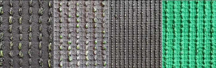 - Pour les projets de clôture, le gazon vert armée avec une hauteur de poils de 10-15 mm coûte environ $0,3-1,2/m² et dure environ 6 mois.
