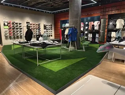 Pour les aménagements paysagers commerciaux, le gazon avec une hauteur de poils ≥20mm coûte environ $1.7-5/m², idéal pour les restaurants, les magasins de détail, les mariages, les stands d'exposition, les hôtels, les terrains de jeux, les gymnases, etc.